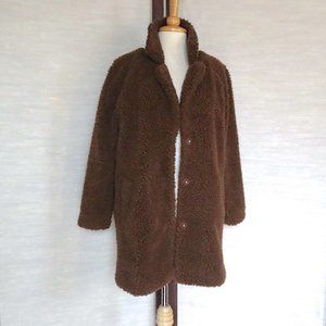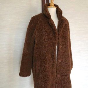 ONLY Chestnut Brown Teddy Sherpa Winter Cocoon Coat with Snap Buttons