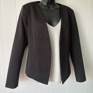 Chic and versatile black blazer. Perfect for professional and casual wear. Tailored fit enhances silhouette.
