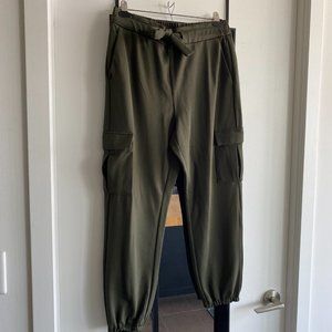 Stylish cargo pants with elasticized drawstring waist.