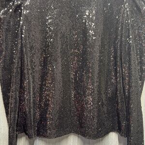 Shine in this elegant black sequin top, perfect for any occasion. Its sleek design adds a touch of sophistication to your wardrobe.