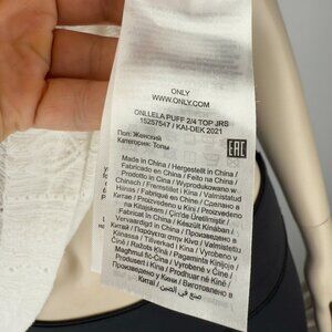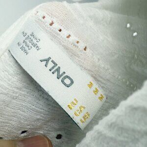 ONLY Eyelet Cottagecore Puff Sleeves Round Neck a Boho White Lace Top sz M