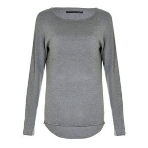Features: Scoop neck, long sleeve, hi-low dipped hem, very soft feel fine knit, rolled hemline, raglan sleeve overstitch detail, stretch fabric