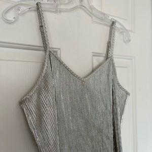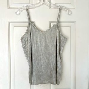 👠 ONLY Primrose Strappy Silver Pleated Tank Top with Adjustable Straps Medium