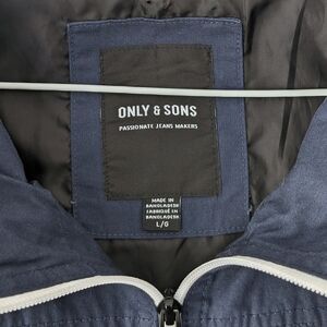 ONLY & SONS Men's Dark Blue Hooded Zipped Windbreaker ~ Size Small