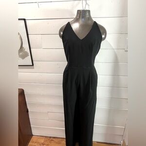 Elegant black jumpsuit with a clean, minimalist cut. Adjustable criss-cross straps in the back, soft V-neckline, and flattering pleats at the waist. The material offers a slight stretch for comfort. A timeless piece for day-to-night outfits. Zipper at the back.