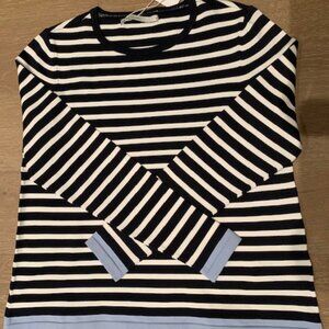 ONLY Suzana Casual Long Sleeve Crew Neck Stripped Knit Pullover Top in Navy + White w Baby Blue Cuffs & Hem NWT
