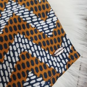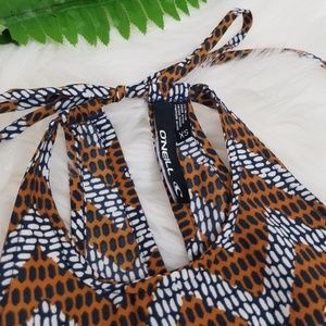 O'Neill Blue Geometric White Blue Brown Pattern Halter Skater Tank Top Neck Tie