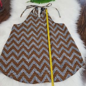O'Neill Chevron Patterned Polka Dot Halter Style Tank Top Tie at Neck Size XS Navy Brown and White