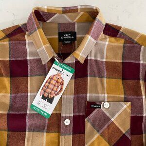 O'Neill Casual LS Button Down Cozy 100% Check Shirt in Burgundy Gold White Tan NWT