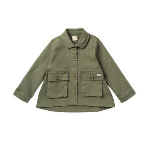 - Button flap front patch pockets