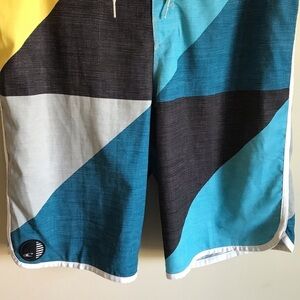 O’Neill Hybrid Board Swim Shorts Blue Yellow White Size 34