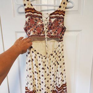 O’Neill super cute lined floral dress with high/low hem and open lower back with corset style! Ladies size XSmall and stretchy.