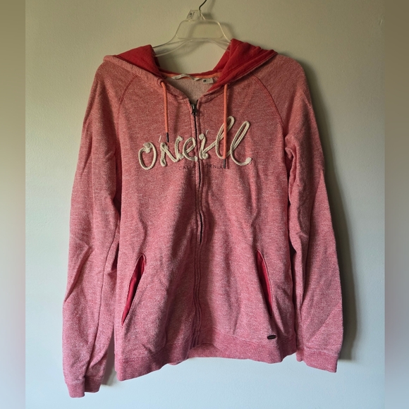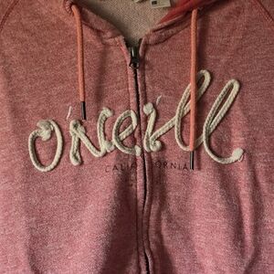 Vintage O'neill pink zip-up hoodie by O'Neill. Features a cozy hood and front pockets.