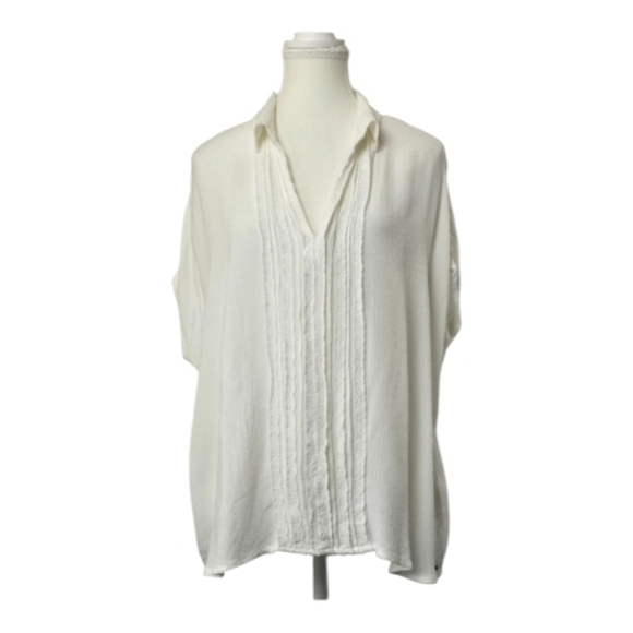 O'Neill White Short Sleeve Boxy V-neck Lightweight Blouse, Sz L (Ptp 26")