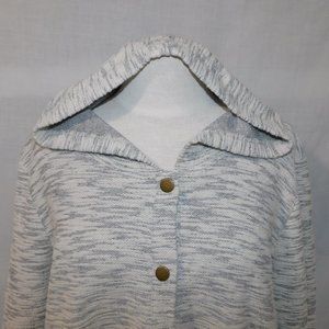 O'Neill Womens XL Marled Gray White Boho Snap Front Hooded Sweater jacket Beach