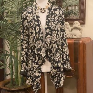 O’Neill blue/white SZ 10 woman’s waterfall open floral lined jacket pockets