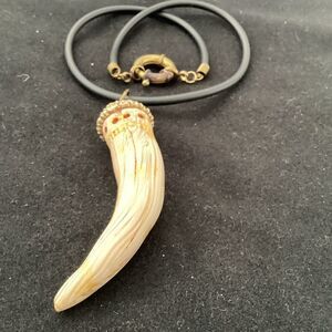 Polymer clay pendant with vintage metal top bead cap and vintage clasp. 8” long, 3” pendant