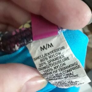 Details - multi coloured pattern, ties up at the sides