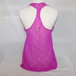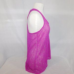 This OP ( Ocean Pacific ) Womens size 3-5 (Small) Purple Lace Racer Back Bathing Suit / Swimwear Cover up is in Excellent clean condition. Coverup is 100% Polyester - Machine washable. Longer in the back. Easy pack - perfect for vacation or lounging in the backyard.