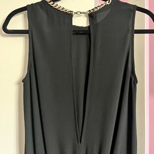 OPEN BACK FLOWY GOLD CHAIN HALTER PARTY ROMPER SMALL BLACK WITH WAIST BELT