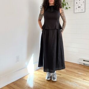 Crafted in a light material, the Aveline Linen Set exudes chic and sophisticated style. The peplum style top flatters any figure, while the maxi skirt with pleated details adds a touch of elegance. This gorgeous set is perfect for any occasion.
