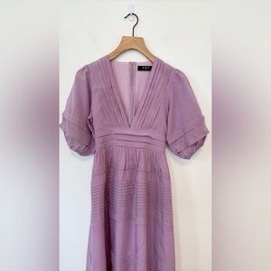 O.P.T maxi dress Size : XS Pit to pit : 15” Waist : 12” Length : 46” Lined skirt 90 % Tencel 10% Flax
