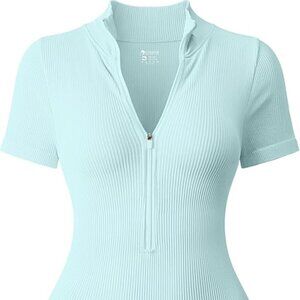 Crafted from a lightweight, high-stretch fabric, it offers a second-skin feel that moves with you. The ribbed texture provides gentle tummy control, while the zipper neckline adds a sporty yet feminine edge, making it easy to dress up or down.