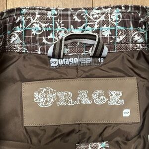 ORAGE WOMENS GIRLS SNOWBOARDING SKI PANTS W/ADJUST BAND brown aqua SZ 16 (XS/S)