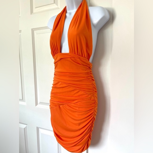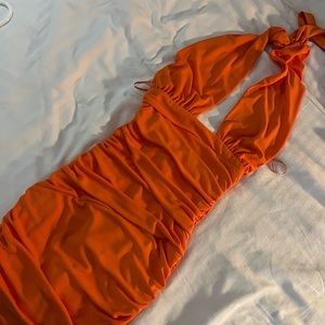 ORANGE CROSS OVER RUSHED MINI DRESS