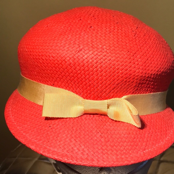 🛍A beautiful unique orange straw hat with a yellow ribbon🛍