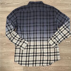 Boss Orange Hugo Boss men's blue, black, yellow, & white plaid shirt, colors goes from dark to light top to bottom. Button front, collared, button close cuffs. Size XXL. Awesome shirt!