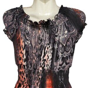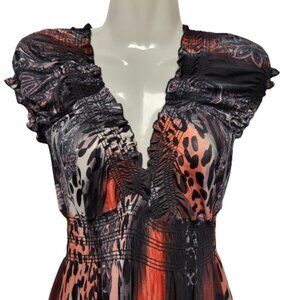 ORANGE and Black Short Sleeve Ruched Stretchy V Neck Summer Maxi Long Dress