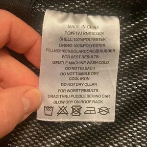 The parka is in a great condition however one sleeve has rubbed material, I showed it in a short video . The rubbed parts of the sleeve isn’t visible, it’s in inner side where it touches body and pocket