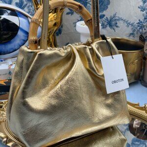 🆕 OROTON 🧿 NWOT Gretel Mini Top Handle, Metallic Gold