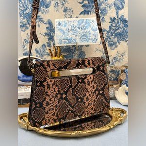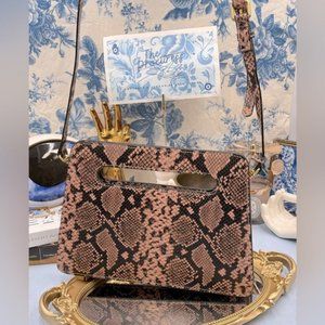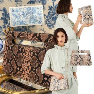 The Oroton Stella Texture Large Clutch in sand texture is a modern clutch crafted from snake embossed leather. This sleek and structured design can be worn across the body or by hand using the top handles.
