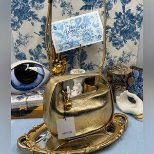 🆕 OROTON 🧿 NWT Clara Mini Convertible Crossbody Bag, Crinkle Gold Leather