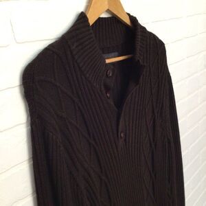 Item keywords: trendy brown, grandpacore, half button front, Normcore, Gorpcore, unisex, Cottagecore, cozy, cabin, retro, soft cotton, textured knit, maroon brown, stylish, timeless classic, casual office, fall winter ORVIETO mens cable knit sweater 100% cotton mercerise maroon brown grandpa large
