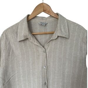ORVIS, XL, Long Sleeve Striped Neutral Linen Blend Top