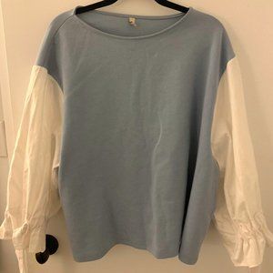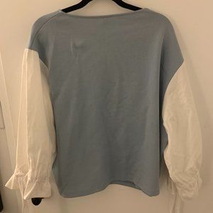 OS Sweater Blouse; Baby Blue & White; Over-sized look