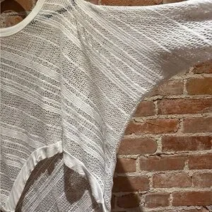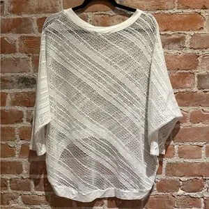 Love this one! Tea and Roses topper - longer hem in the back, batwing sleeves - loose open knit looks great over anything fitted… I wore it over black tank and cropped black leggings 👍