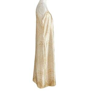OSCAR DE LA RENTA CREAM GOLD PRINT SPAGHETTI SLEEVES SATIN MAXI SLIP SLEEPWEAR