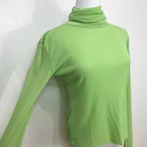 OSCAR LEOPOLD NEON GREEN SHEER MESH TURTLENECK LONG TEE TOP - M