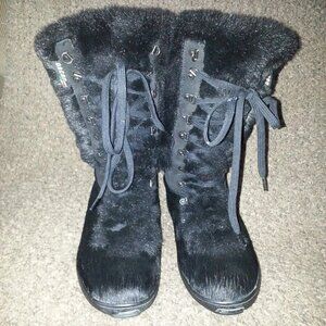 OSCAR SPORT-Italy-Apres Ski-Goat Fur and Fun Fur Boots-Black-Size 38-Near Mint