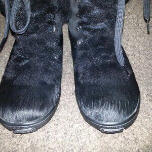 Nice pair of Italian boots! The shoe part of the boot is black goat fur and the shaft of boots is a fun fur over black suede.