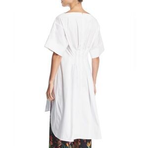 Oscar de la Renta Half-Sleeve Split-Neck Gathered-Back Poplin Tunic Blouse