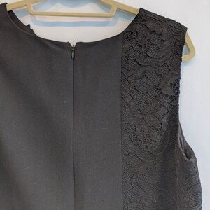 Lace panel, subtle ruffle details, very classic and timeless. Hidden back zipper.