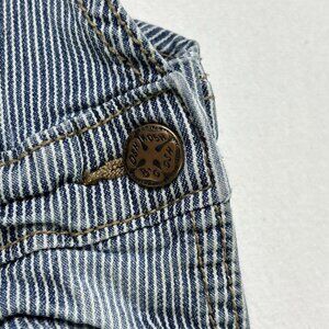 OSH KOSH B'Gosh Blue Striped Vestbak Bib Overalls Denim Dress Girls Sz 24 Months