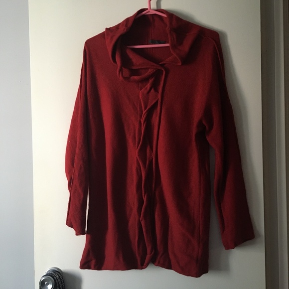 OSKA Lagenlook Burgundy-Red Wool + Angora Ruffle Front Sweater II Reg