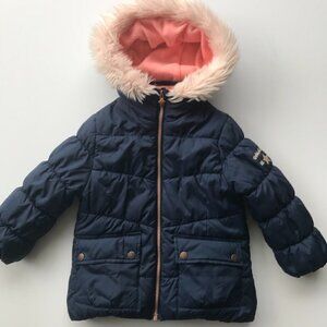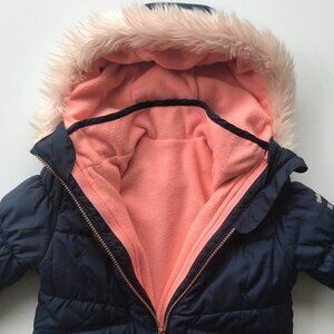 OSKKOSH Girl puffer & detachable inner reversible jacket, navy, pink Girls 4-5