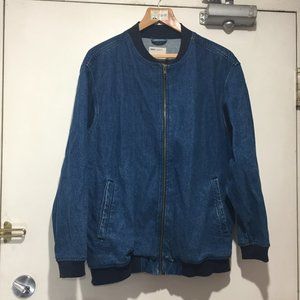 Osos Denim Bomber Tall Jacket, Size 6, Color Blue Wash, 100% Cotton, Side Pockets, Closure Zipper, in Good Condition, Great Oversized Jacket, Great Look, Great Fitting.